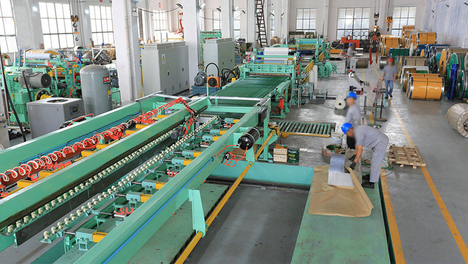 > 生產(chǎn)設(shè)備引進(jìn)進(jìn)口分條機(jī)、切板機(jī)、包裝機(jī)等多臺(tái)設(shè)備;