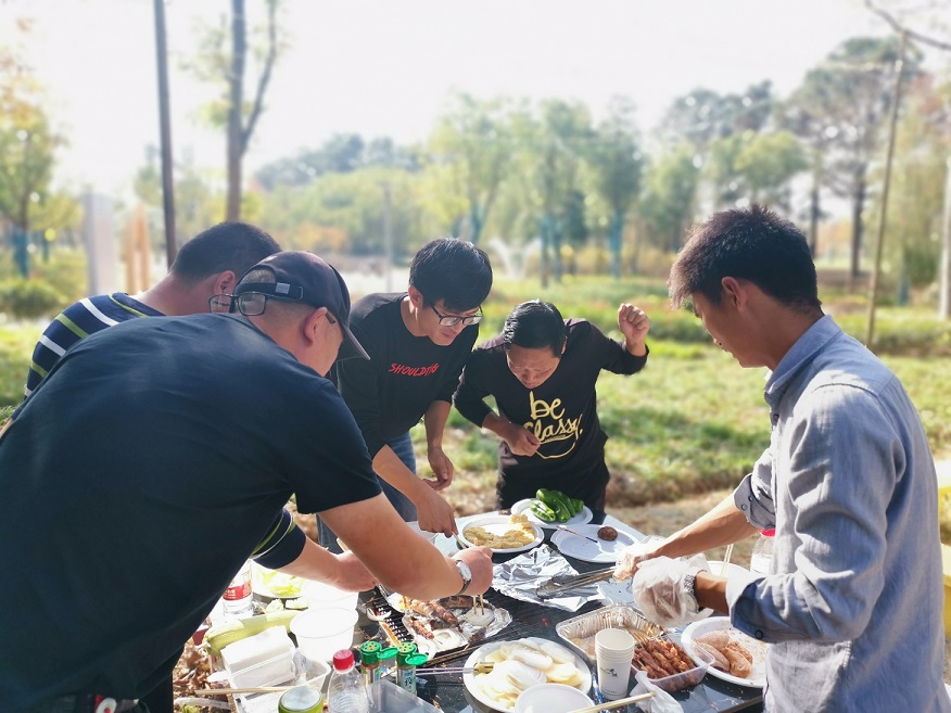 經(jīng)過(guò)了一上午的活動(dòng),開(kāi)始準(zhǔn)備起了午餐——燒烤!大伙各自忙碌著,有的洗菜,有的切菜,有的準(zhǔn)備炭火,干的熱火朝天,忙的不亦樂(lè)乎,不一會(huì)開(kāi)始分享大家的勞動(dòng)成果。