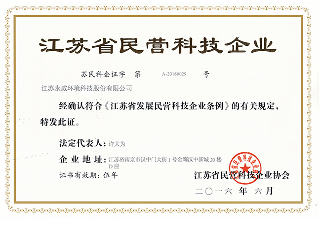 當前位置:首頁 > 資質榮譽 > 江蘇省民營科技企業 資質榮譽