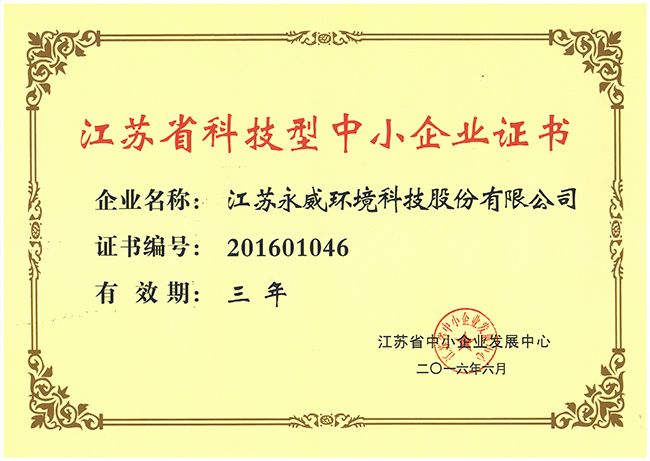 當前位置:首頁 > 資質榮譽 > 江蘇省科技型中小企業 資質榮譽